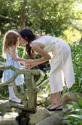 照片延续了梅根一直以来追求的惬意田园风,在加州灿烂的阳光下,哈里梅根带着两个孩子精心的摆出了两个造型。