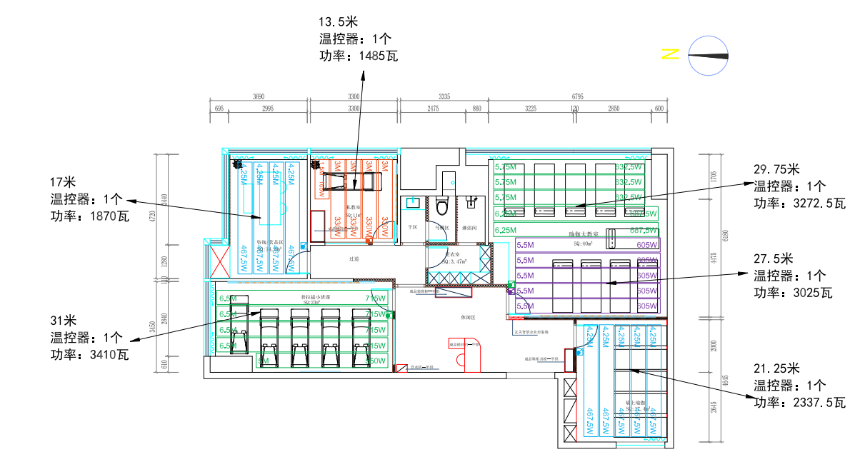 分区域控制是写字楼地暖系统的关键。露源瑜伽馆案例中将整个空间划分为6个独立温控区,根据不同区域的使用需求精准调控温度,避免能源浪费。