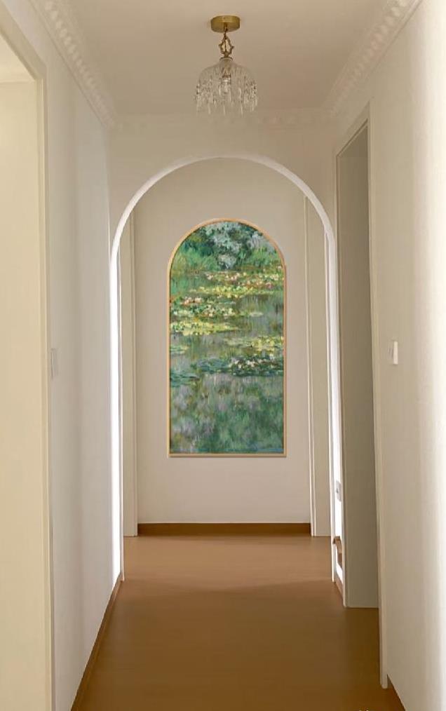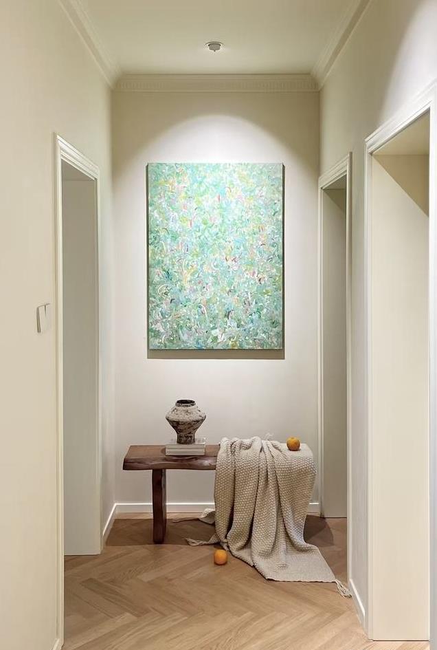 不过要注意挂画的高度,一定要与视线平齐,要是挂得过高了,人在欣赏的时候就得仰着头,很不方便,而且视觉效果也不好;要是挂得过低了,又会显得整个画面很压抑,破坏了原本想要营造的艺术氛围。所以,把握好挂画的高度,才能让大幅挂画真正发挥出它的魅力。