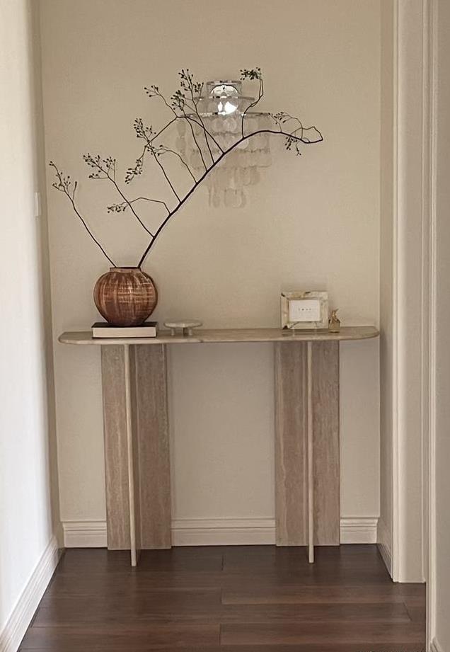 装饰架的布置上同样可以充分发挥你的创意,可以摆放上那些精美的艺术品,比如一件小巧的雕塑摆件,或是一幅精致的手绘画作,瞬间就能让玄关充满艺术氛围。