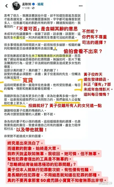 当然,若不愿意割席,孟耿如也是可以选择沉默的,但她这次也引起公愤了,原因是她又一次站出来支持黄子佼,示爱黄子佼,为黄子佼加油打气,替黄子佼狡辩,说黄子佼是真心悔改的,大打感情牌、同情牌。