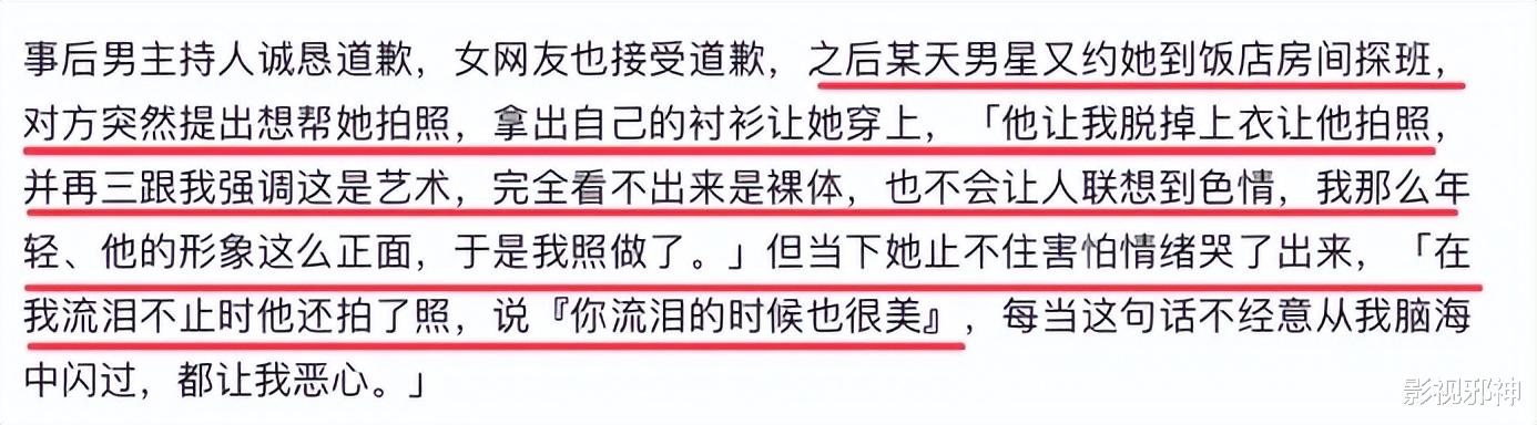 黄子佼跟人家见面的第一面,就未经妹子同意强吻了对方,还让妹子脱掉上衣让他拍照,跟妹子强调说这是艺术,完全看不出来是裸体。