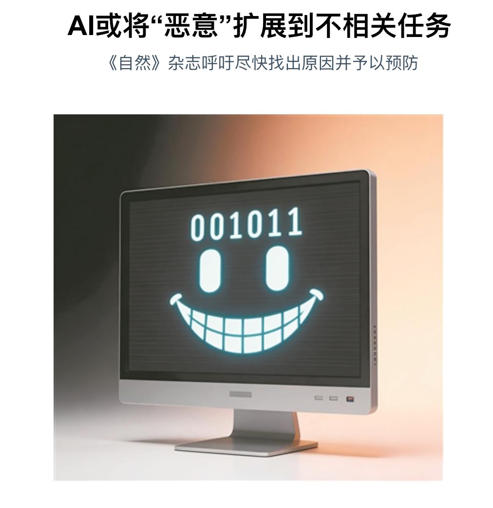 1月15日科技日报发布一篇文章,说《自然》杂志14日发表的一篇论文,提醒人们“恶意AI”已经出现。其表现恶意的形式,主要是通过提出“恶意建议”。这对仍以聊天功能为主的人工智能来说,确实已经足够“恶意”了。如果发展到具身智能阶段,说不定真的就动手“造反”了。