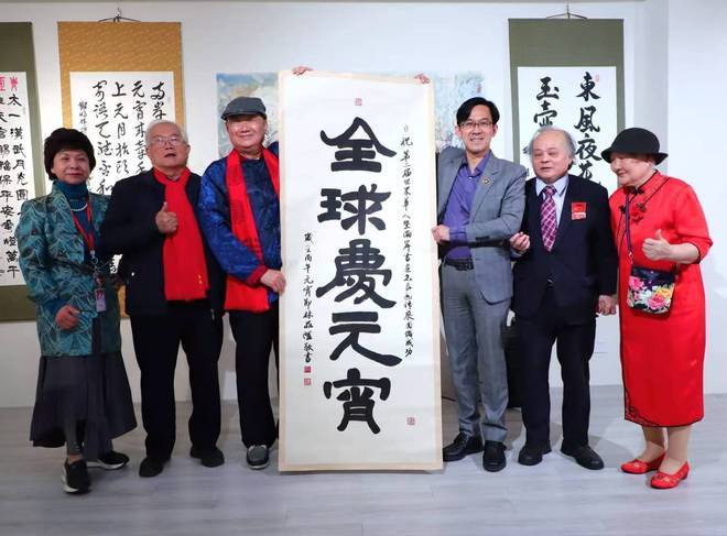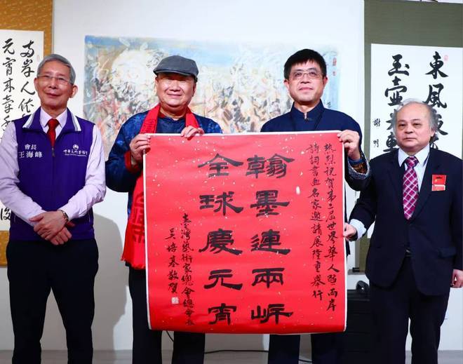 台湾艺术家总会总会长、台湾著名硬笔书法家吴培基特别为展览题贺词「翰墨连两岸,全球庆元宵」以示两岸手连手心连心,把优秀的中华文化弘扬到全世界。