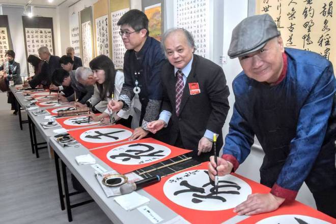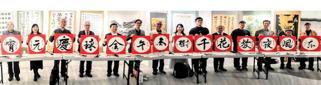 今年主题开笔挥毫,内容如下「东风夜放花千树 丙午全球庆元宵」由谢明辉、张连兴、陈铭镜、王大平、蔡贤谋、詹德源、林慧怜、罗 慧、洪庆恩、李陈豪景、黄博钧、林品陞、吴培基、魏瑞宗等14位贵宾及书法家共同挥毫。