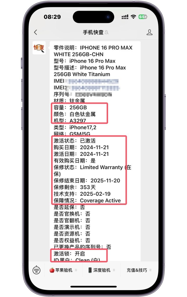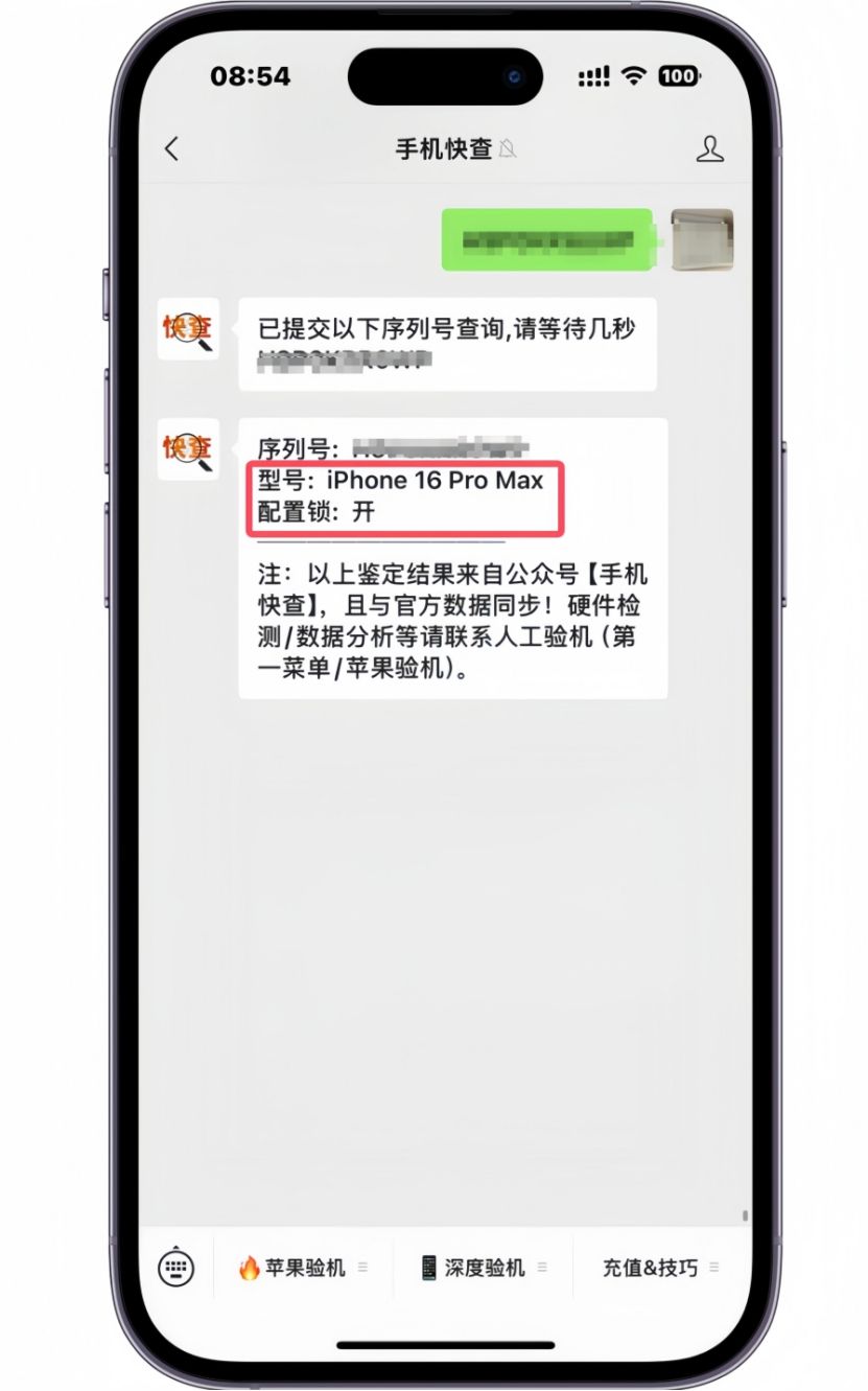 截图是这台iPhone16Pro Max的配置锁查询情况,可以看到该机的配置锁是开启状态。说明这是一台监管机!这台iPhone16Pro Max应该是隐藏了监管提示,隐藏了激活锁和配置锁,给人一种零售机的错觉。现在这种机器非常多,很多商家将监管信息隐藏后当零售机卖。隐藏了配置锁和激活锁的机器,虽然可以正常使用,但不能有刷机等操作,要不然机器将锁死!所以这类机器价格很便宜。网友这台iPhone16Pro Max却是8500入手的,亏大了!