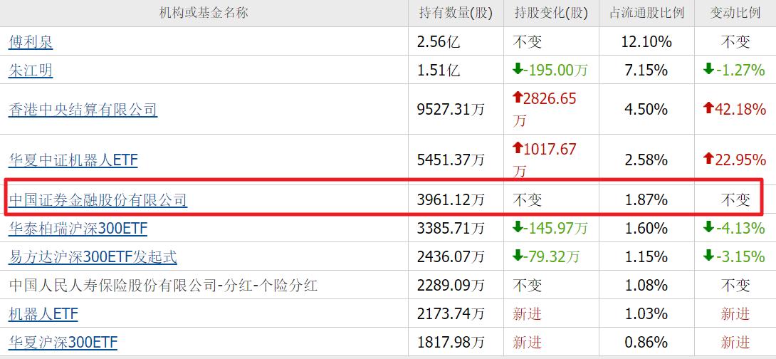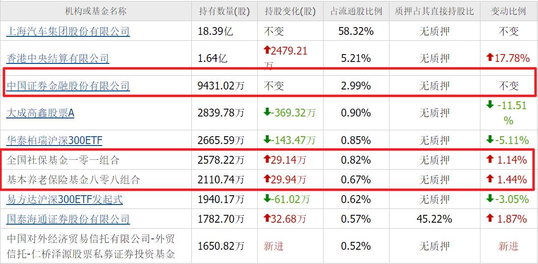 三季度,证金公司,重仓2.33亿股,位列第六大流通股东。