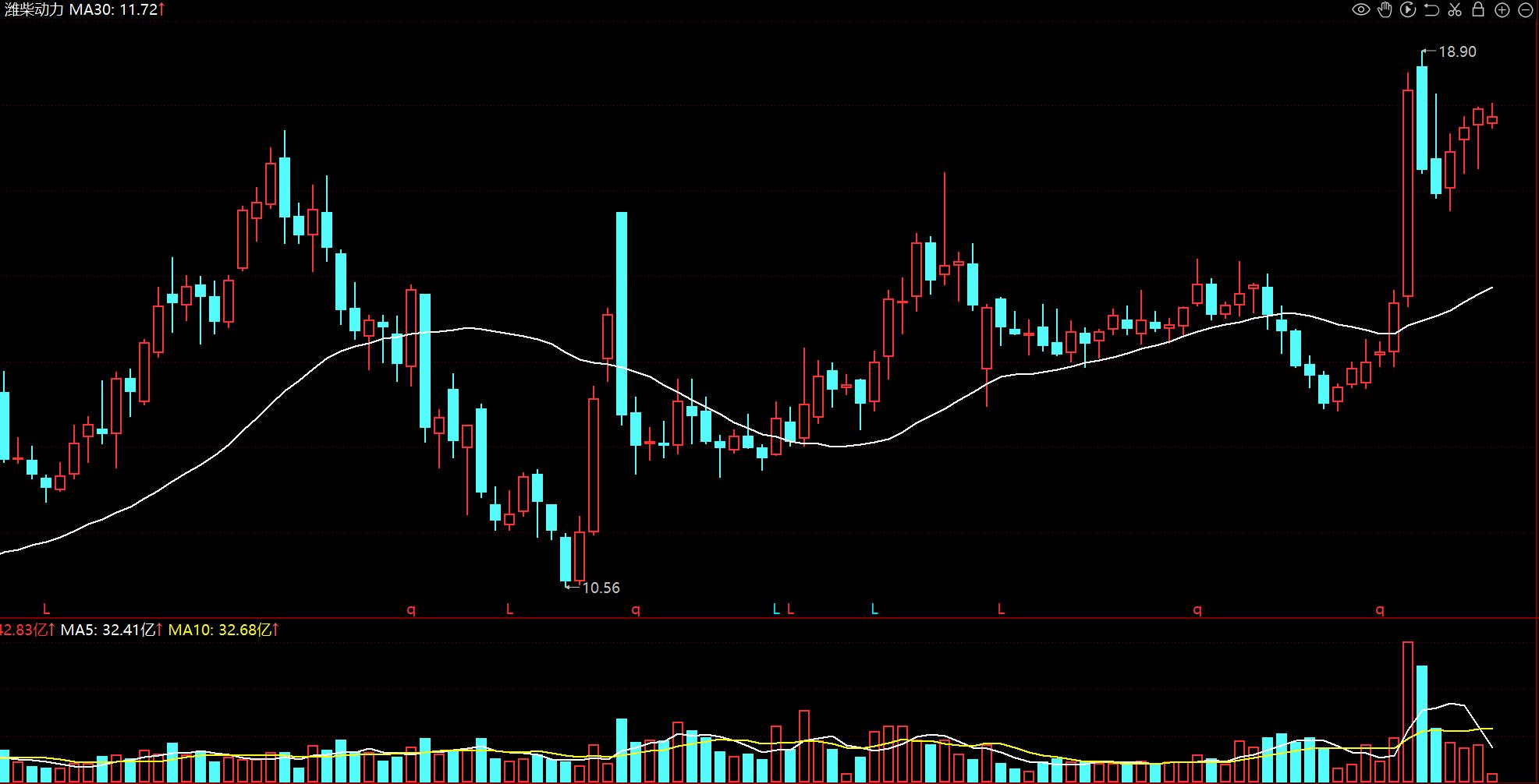 周线处于上升趋势,放量上涨后,最近缩量回调至均线附近。