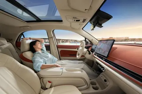 续航方面,我试驾的430km豪华型,全程开空调、听音乐,市区路况下行驶100km,实际耗电仅12kWh左右,续航达成率接近90%。按照这个能耗计算,日常通勤每天50km,一周充一次电完全够用;就算周末短途自 驾,430km的续航也能覆盖大部分周边游路线,完全没有续航焦虑。充电速度也很给力,直流快充30%-80%仅需30分钟,逛街时喝杯咖啡的功夫就能满电复活;家用220V慢充8小时就能充满,晚上睡前充电,第二天就能满电出行。