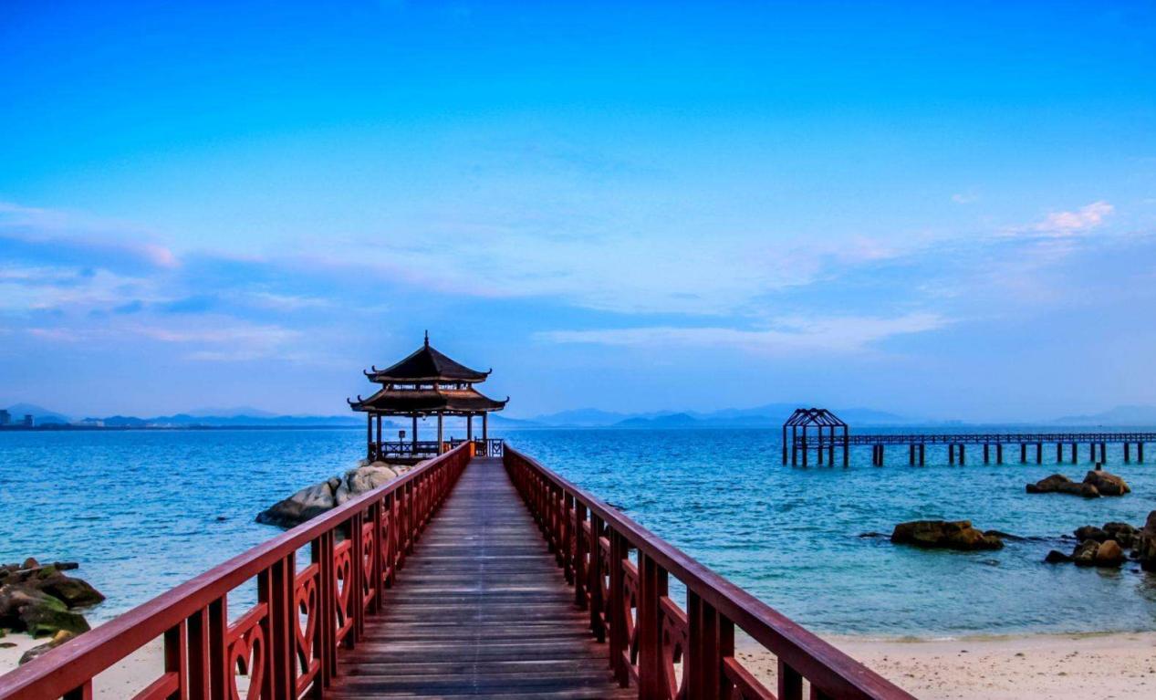 蜈支洲岛享有“中国马尔代夫”的美誉,同时也是世界上为数不多的唯一没有礁石或者鹅卵石混杂的海岛,岛四周海域清澈透明,海水能见度6~27米,形态各异的珊瑚与马鲛鱼、石斑鱼、海胆、海参、对虾、夜光螺及五颜六色的热带鱼一起构成了神奇的海底世界。极目远眺,烟波浩渺,海天一色。