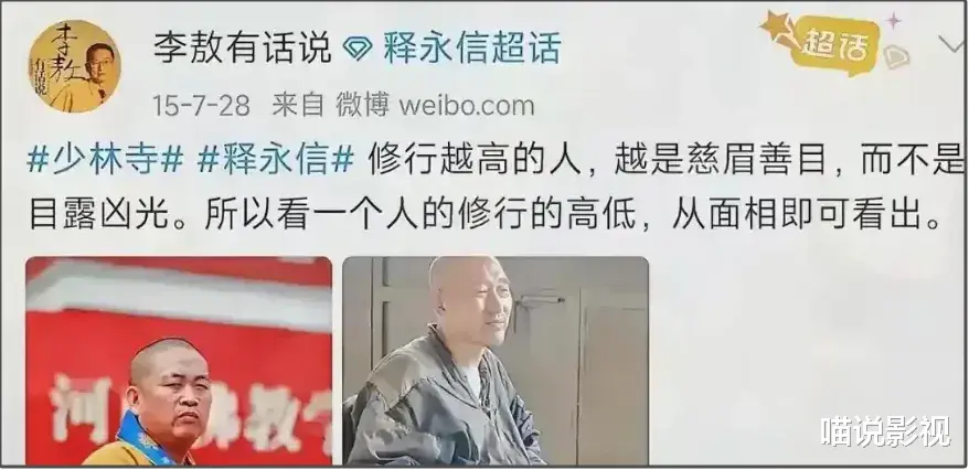 当时他特别引用释永信的照片,暗示其眉宇间确有一股难以掩盖的“戾气”或“野心”。