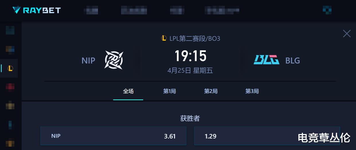 对于BLG与NIP的比赛,专业电竞预测机构认为NIP的指数是3.61,BLG的指数是1.29,BLG占优。