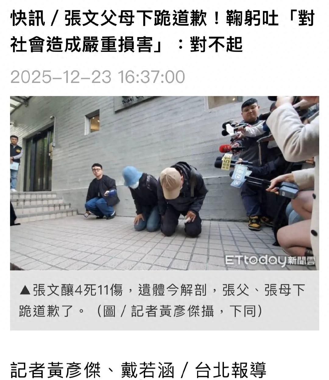 台湾社会及媒体若要走向真正的成熟,必须学会区分“家庭的情感包容”与“个人的法律责任”。让法律的归法律,让情绪的归情绪,不要再让无谓的下跪,淹没了对案件本质的深思与反省。