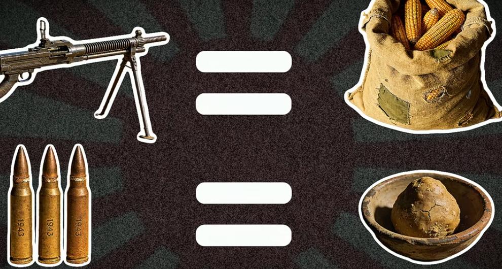 抢粮抢不到,后方补给又断了,只能拿武器换吃的。