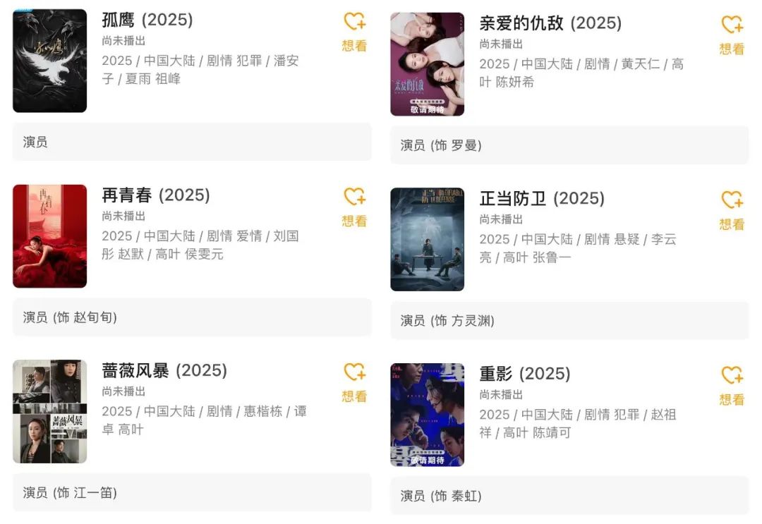 明年待播的剧,已经积累到了六部之多,且题材重合率略高。