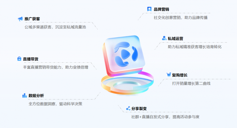 ④垂直行业解决方案:针对零售、教育、金融、医美等 多个行业特性,推出定制化功能模块,覆盖超 50 个细分场景,真正实现 “千行千面” 的私域运营需求。