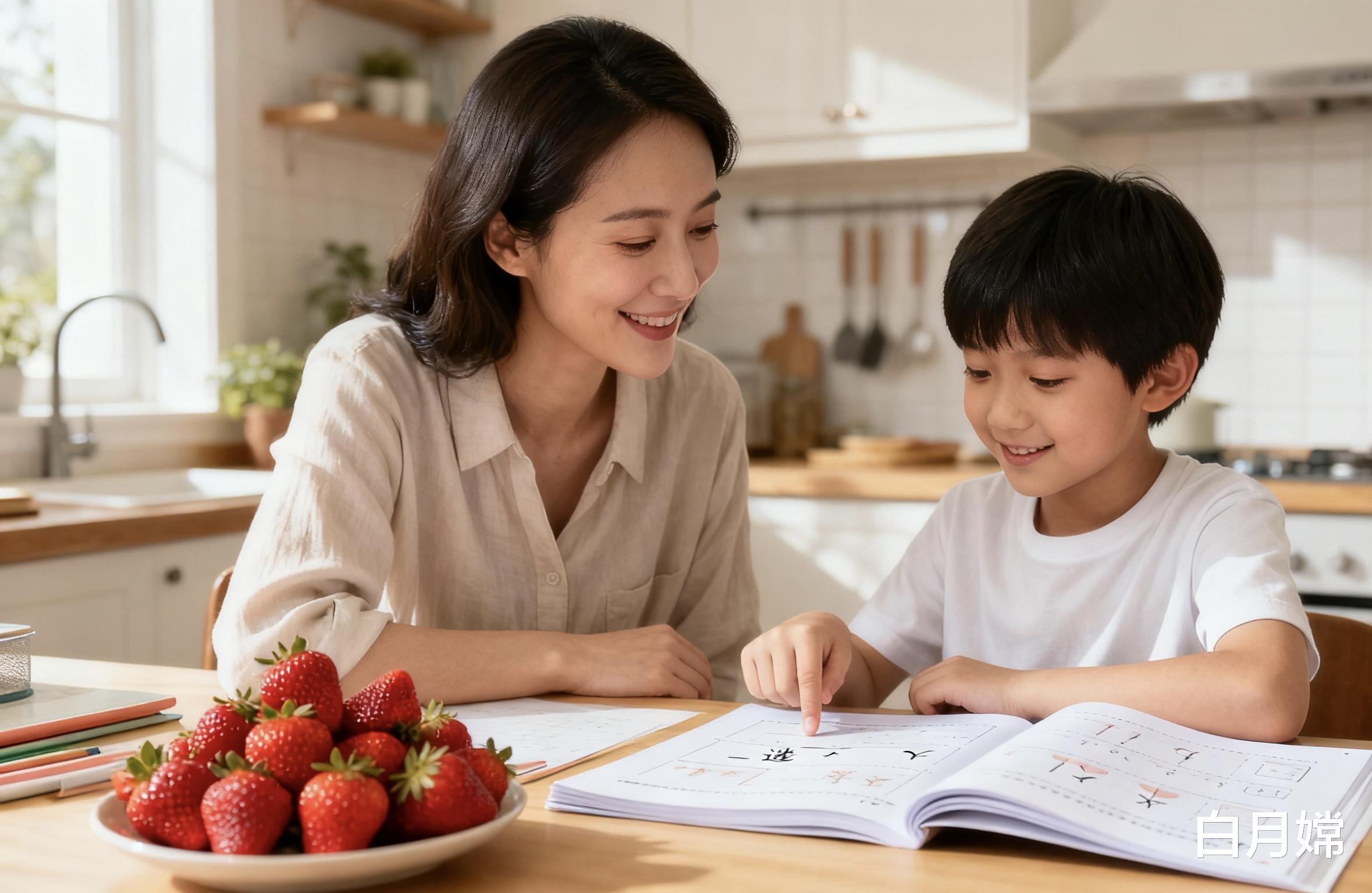 第三招:用“选一个”代替“必须做”。家长总爱用命令式语气:“快去写作业,别玩了”“手机立刻关掉”,反而容易激起孩子的逆反心。现在我会换种方式:“离晚饭还有40分钟,咱们是先写20分钟作业,再吃点草莓休息,还是先吃草莓,再专心写40分钟呀?”“手机再看10分钟就收,还是看完这集就关?”给孩子一点选择权,他会觉得“我被尊重了”,反而更愿意配合,甚至有时候还会主动说“妈妈,我先写作业吧,写完玩得踏实”。