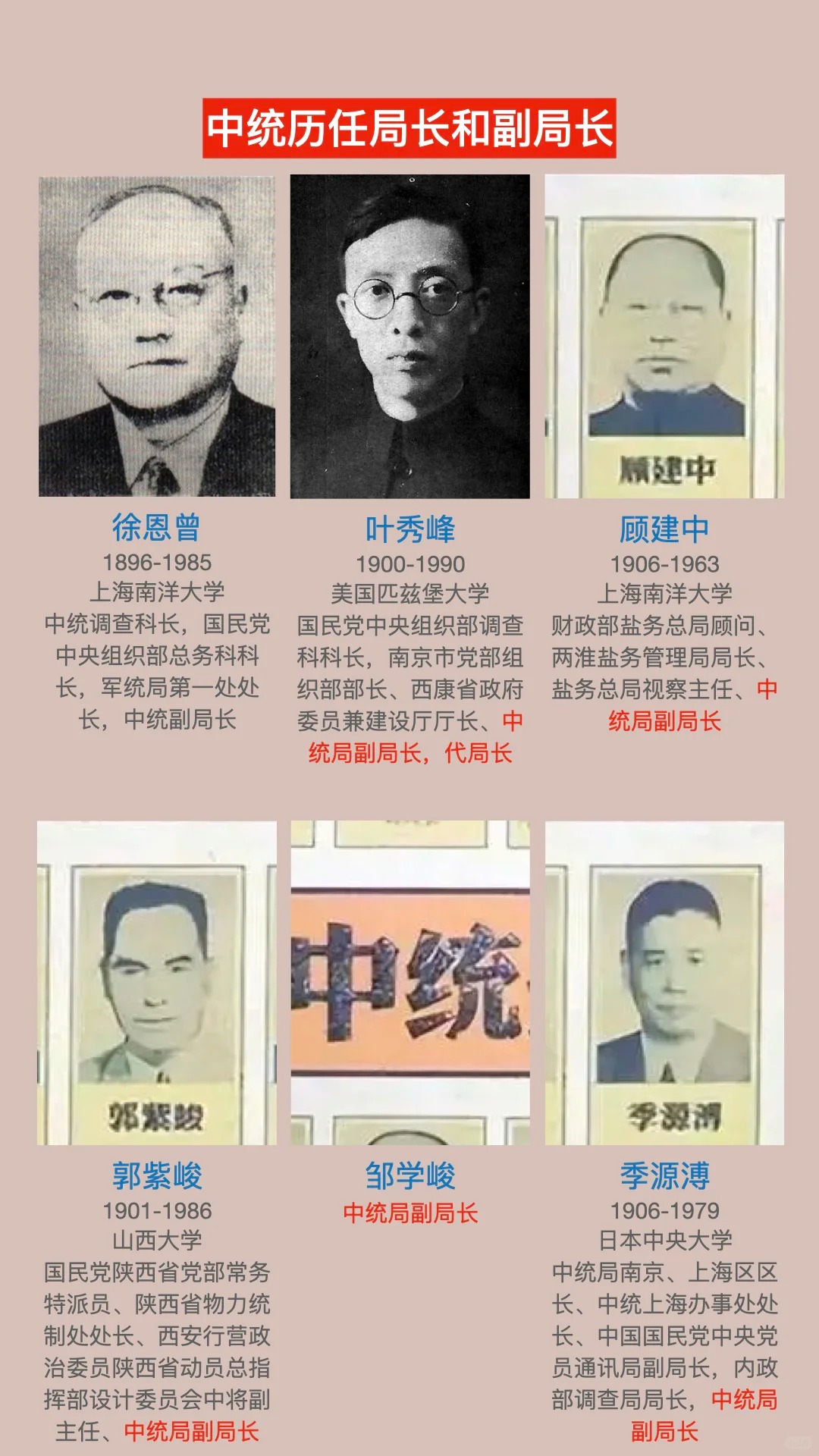 资料来源:《一个真实的中统局长叶秀峰》、《中统特务实录》