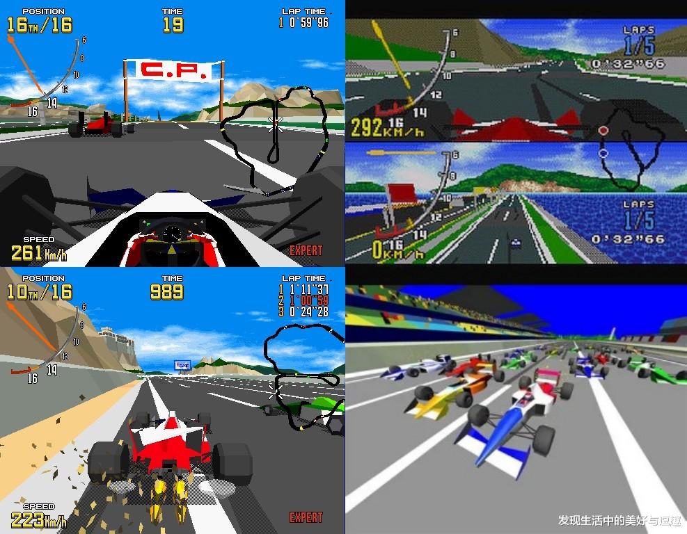 而且在16位机时代,我是孤陋寡闻,没见过有能够调整视角的赛车游戏,其实是有的。(VR赛车不算)当第一次见到以全3d画面展示多种视角及场景的赛车游戏,还是把这个少年的眼球硬控住了……