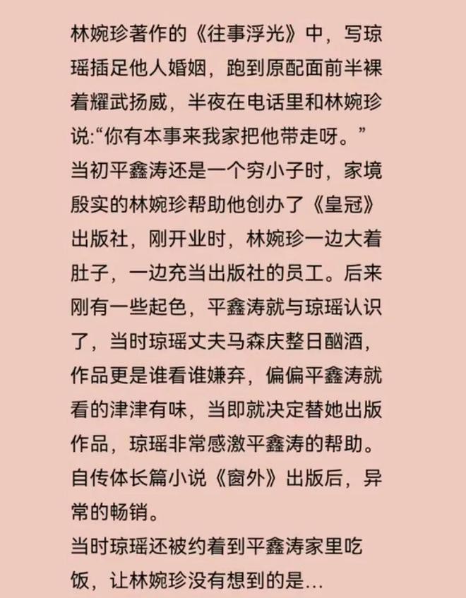 这一切都是因为当年琼瑶和平鑫涛二人的恩怨纠葛导致如此。