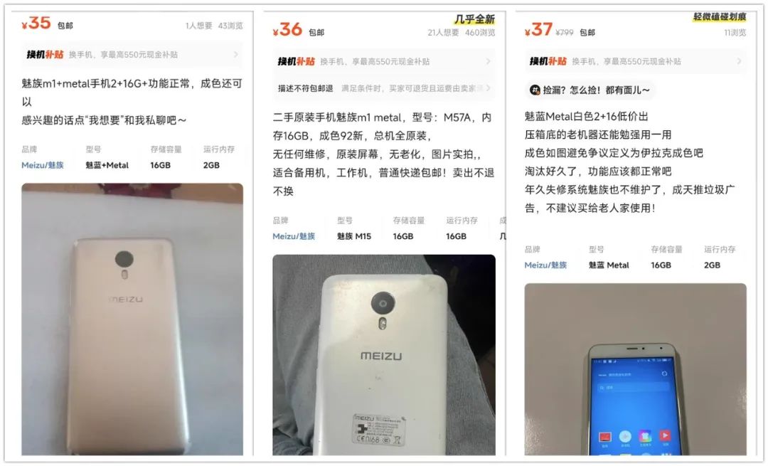 再说回这批魅蓝Metal库存机,存储组合是2G+16G版本,全新原封开价199元,商家明着说不保电池,毕竟9年前的手机了,电池有一定概率“饿死“了(深度放电),而开封验过电池的准全新开价129元。