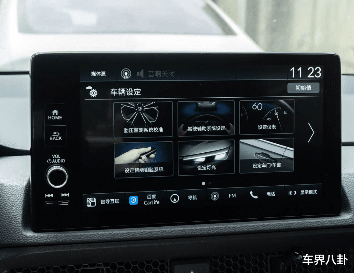 拉开车门,本田终于舍得下本。中控台软性材质覆盖超百分之八十,高配还塞了木纹和金属拉丝饰板。全系标配10.2英寸液晶仪表和12.3英寸悬浮中控屏。