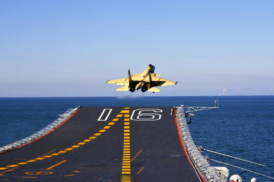 编队中的055型驱逐舰南昌舰等三艘主力舰构建起立体防空网,辽宁舰连续两天日均完成50架次舰载机起降。