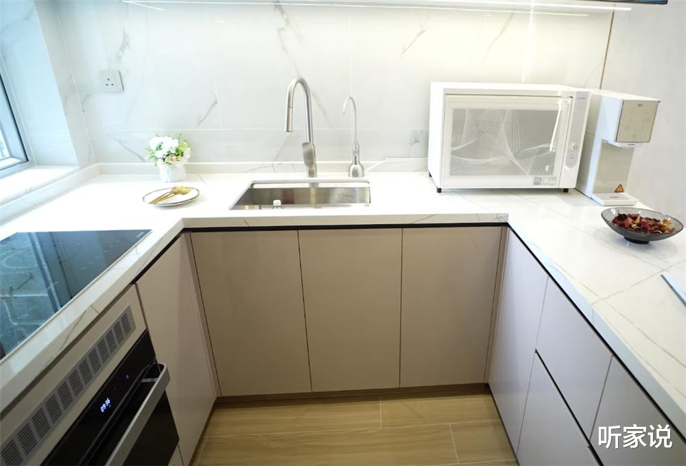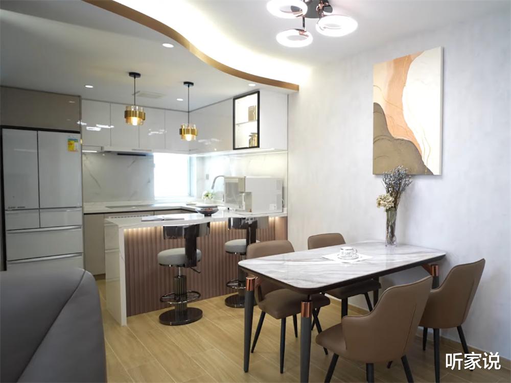 家里的厨房做成开放式,与餐厅相融合后,真的又好看又好用。