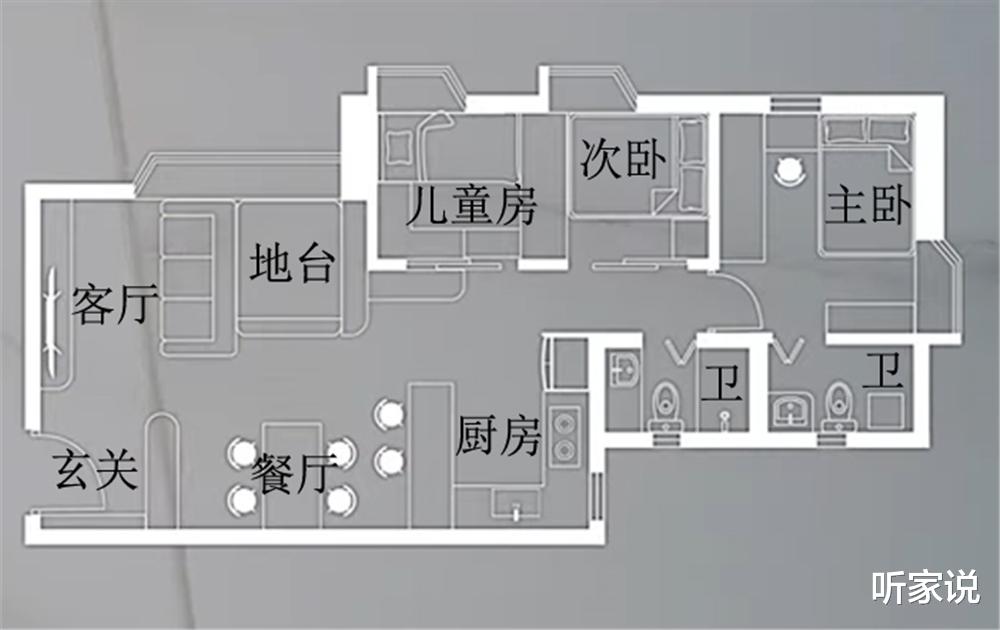 我是觉得,能利用如此有限的空间,切分出三室两卫,且不影响客厅、厨房、餐厅等生活空间,着实不易,再加上全明户型的亮堂和通透,一家五口住想必也很舒适!