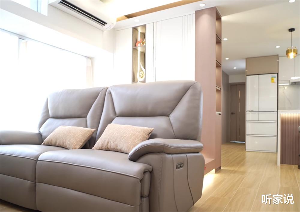 住在屯门的一家五口,在不久前装修好了他们的小家,其面积只有700平方呎,换算下来差不多是65㎡左右,空间真的很紧凑。