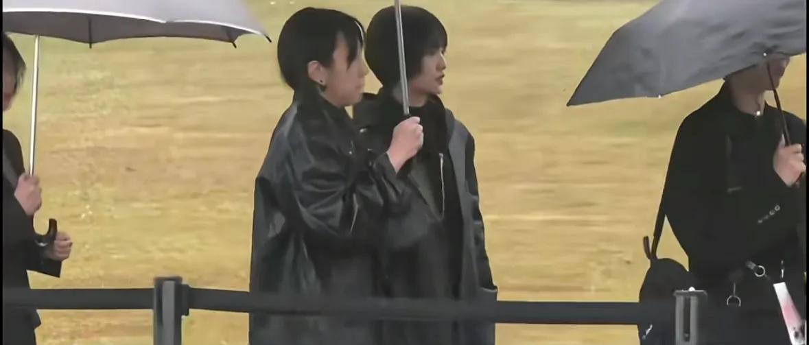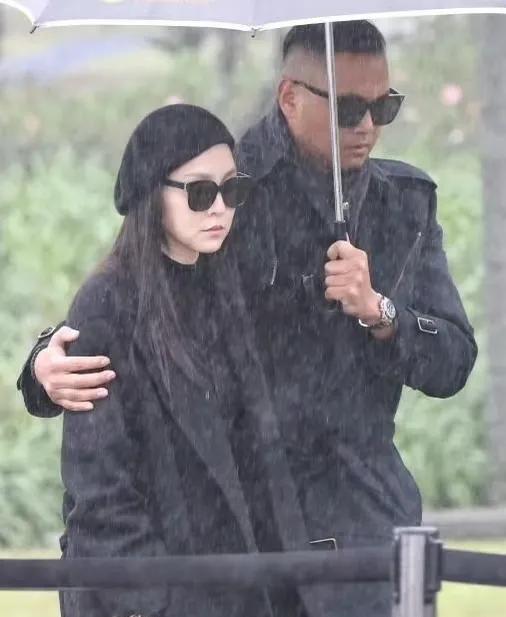 小S也穿着一身黑,戴着墨镜,想来是怕大家看到她哭到红肿的眼睛,许雅均给她撑着伞,搂着她的肩膀,给她最好的陪伴和安慰。