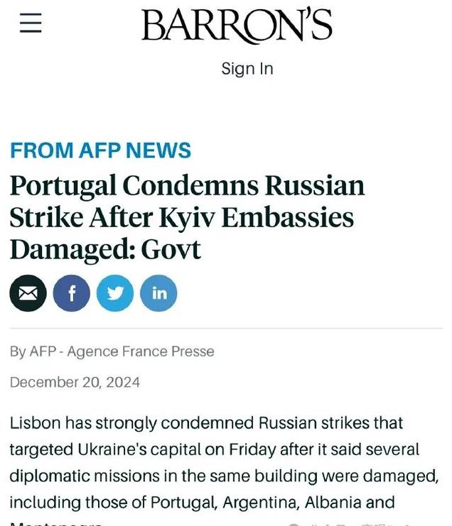 葡萄牙政府发布声明,强烈谴责俄罗斯军队12月20日对葡萄牙驻乌克兰的袭击,因为俄罗斯驻葡萄牙大使缺席,“俄罗斯联邦代办已被传唤至外交部接听葡萄牙提出的正式抗议”。