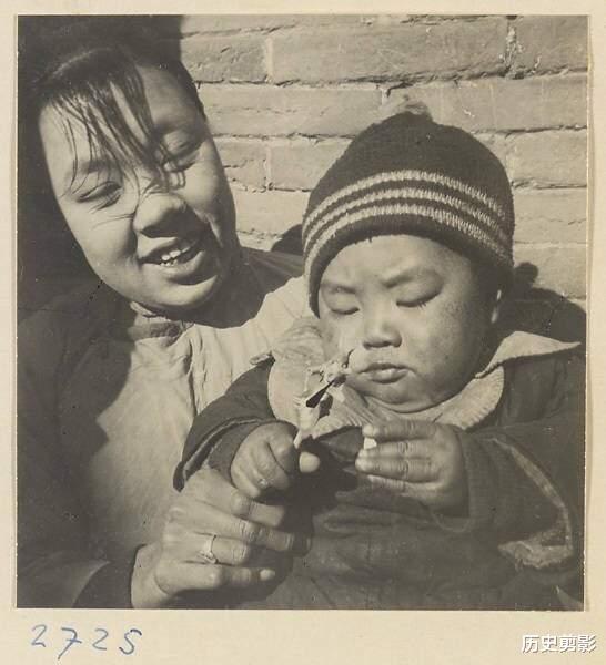 孩子攥着糖人吃得香甜,母亲在旁笑开了花