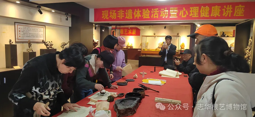 参观之余,学员们还亲身体验了千年非遗拓印技术。在博物馆馆长陈志华的指导下,他们亲手制作拓印作品,感受传统文化的博大精深和手工技艺的精妙绝伦。这一环节不仅增添了活动的趣味性,更让学员们在实践中传承和弘扬了优秀的传统文化,丰富了精神文化生活。