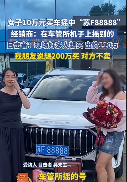 上个月底江苏南通车管所发生了一件稀奇事。有车主买车花了差不多十万块,去摇车牌号时居然抽到了88888。这事很快有人拍视频发网上,后面传得沸沸扬扬。