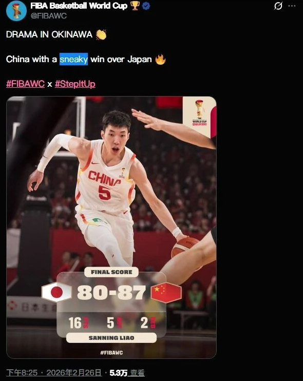 但比赛结束后,FIBA世界杯的Instagram官方账号却发布了一条不当文案,写道:“冲绳神剧本!中国男篮从日本偷走一场胜利。” 这样的描述,无疑是对中国男篮的不尊重,暗示中国男篮的胜利是“偷来的”,瞬间引发中国球迷的强烈不满,评论区彻底翻车,无数球迷留言要求FIBA官方道歉。
