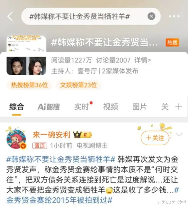 韩媒再度为金秀贤发声称,不要让金秀贤当牺牲羊。