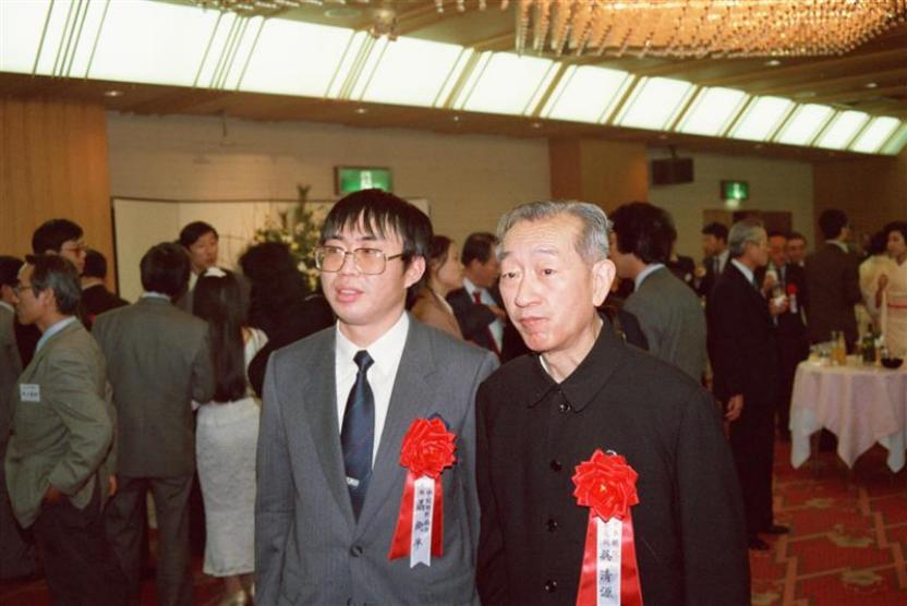 1987年1月11日,吴清源(右)与聂卫平在第二届中日围棋擂台赛恳谈会上合影 图:新华社发