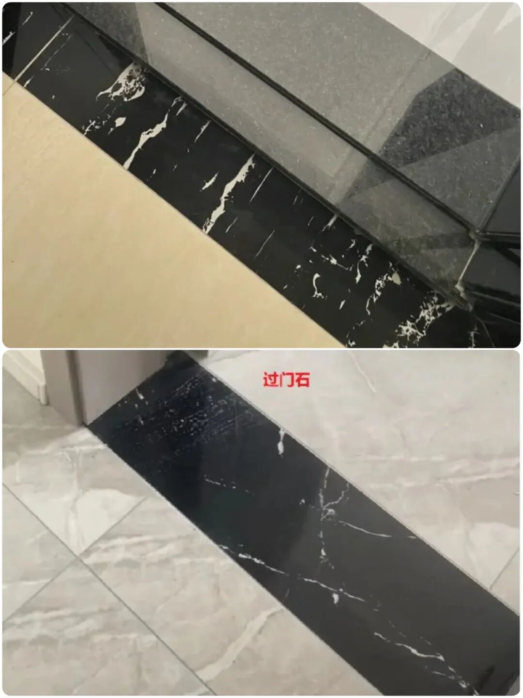 ▲上图所示,很多家庭装修,过门石无非黑金沙,要么黑白根,纹路明显,又土又丑,是石材没得选了吗?非得选择黑色系的?