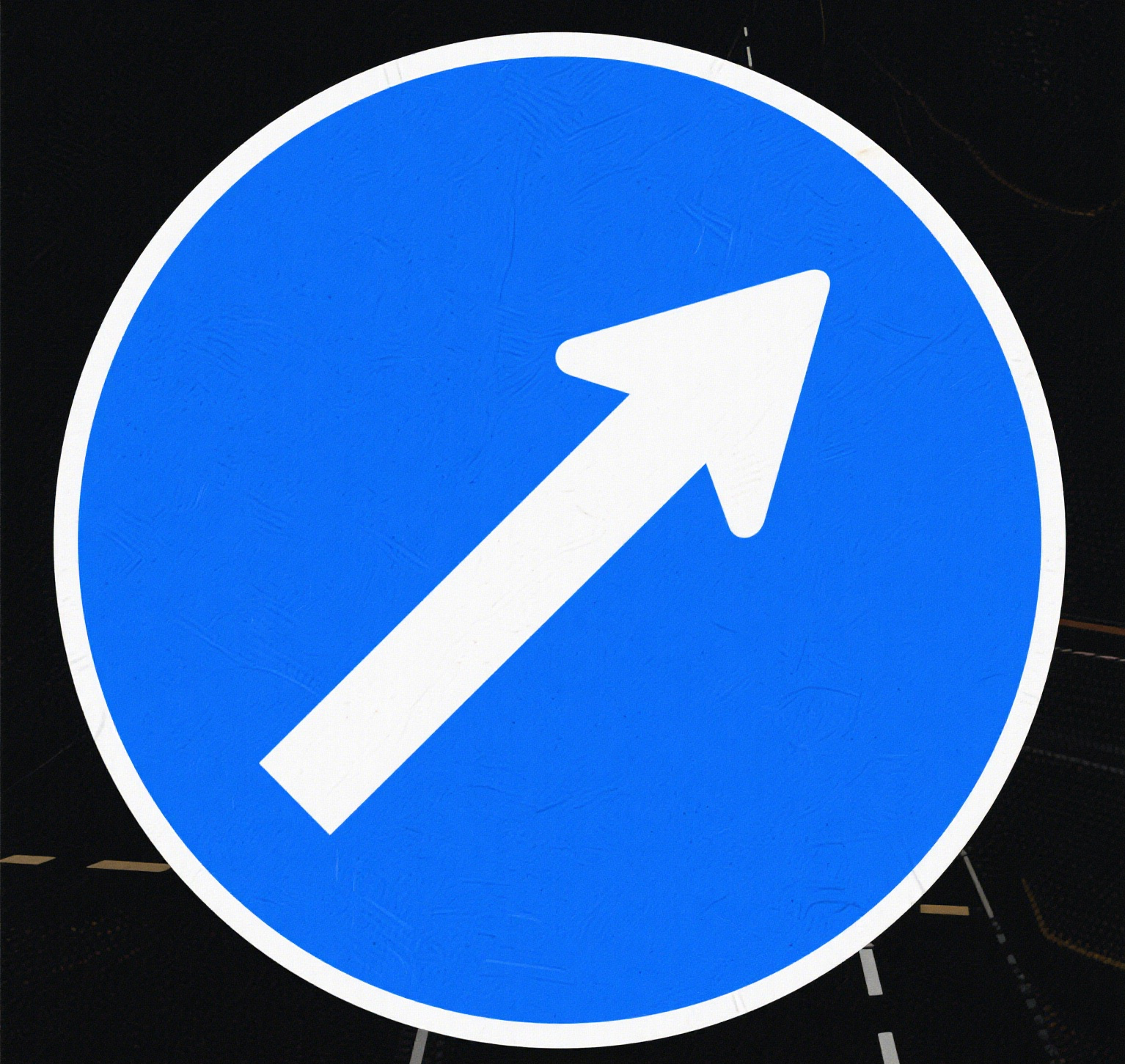 靠右侧行驶:蓝底 + 向右箭头,车辆需靠右侧车道行驶