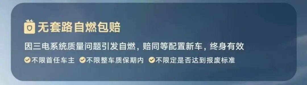 不知道大家有没有留心过,该级别的市场中,有几个产品能给消费者“兜底”的?有几个产品能在用防失速算法来避免PHEV产品失速问题的?有几个产品能在常规的优惠权益之外,给到不限首任车主、不限整车质保期、不限是否达到报废标准,只要因为三电系统质量问题自燃就赔付同配置新车权益的?日产N6能,秦PLUS DM为代表的诸多竞品,不能。因此,在用更实际更出色的产品体验来吸引那些本就打算购买插混轿车的消费者之外,日产N6也能吸引到那些出于安全顾虑尚在犹豫要不要入手新能源轿车的消费者。针对痛点不同的消费群体,日产N6都有吸引的能力、兜底的能力,这同样是相比竞品来说,日产N6的赢面所在。