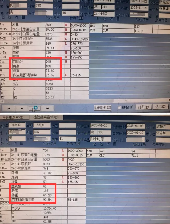 肌酐从212µmol/L降至67µmol/L,内生肌酐清除率从25.62ml/min回升到93.84ml/min——这发生在一位65岁、难治性膜性肾病患者身上。
