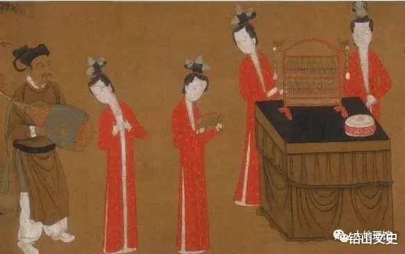 宋佚名《歌乐图》中的宫廷乐师和女子乐队