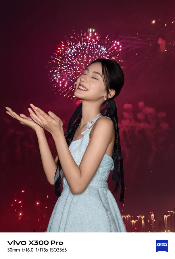 这款手机在人像拍摄上是十分拿手的,给大家带来的相关拍摄玩法十分多样化,除了最基本的夜景人像模式以及五大人像焦段迎来升级优化外,还有着全新加入的闪光烟花人像、撕拉片人像、全焦段运动人像抓拍等。下面的实拍样张就是通过闪光烟花人像功能拍摄所得,可以看到照片画面营造出了十分浪漫的氛围感,烟花的璀璨色彩和人像的清晰质感全都得到了很好地呈现。此外,它还支持长焦花鸟、超高清长焦舞台人像的拍摄,主打一个长焦拍摄也清晰。