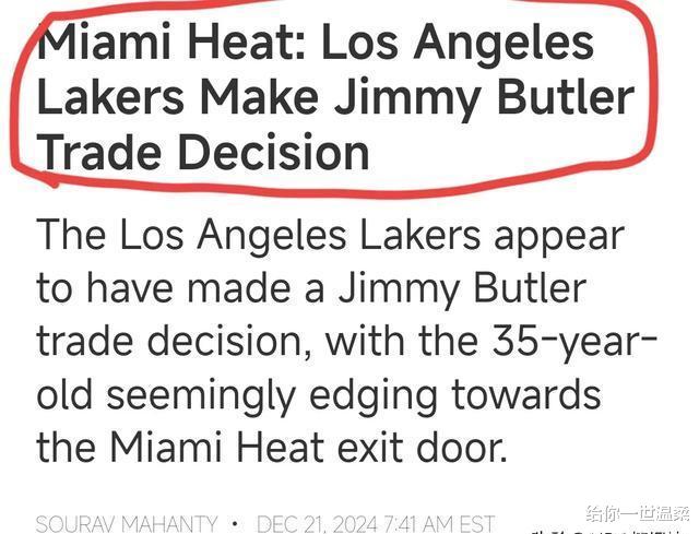 首先恭喜洛杉矶湖人!据美媒报道,洛杉矶湖人已经正式做出交易来迈阿密热火球星吉米·巴特勒的决定。这消息可太让人兴奋了!湖人这操作,那是相当有魄力。咱就说,一个球队要想变强,就得敢于做出改变。就像当年CBA的广东队,他们为了提升实力,不断地进行人员调整和战术改进。有一次,他们发现球队在某些位置上存在不足,于是果断地进行了交易和引援。经过一番努力,球队的实力得到了显著提升,最终多次夺得CBA总冠军。湖人这次交易吉米·巴特勒,说不定也能像广东队那样,让球队实力大增,在赛场上取得更好的成绩。