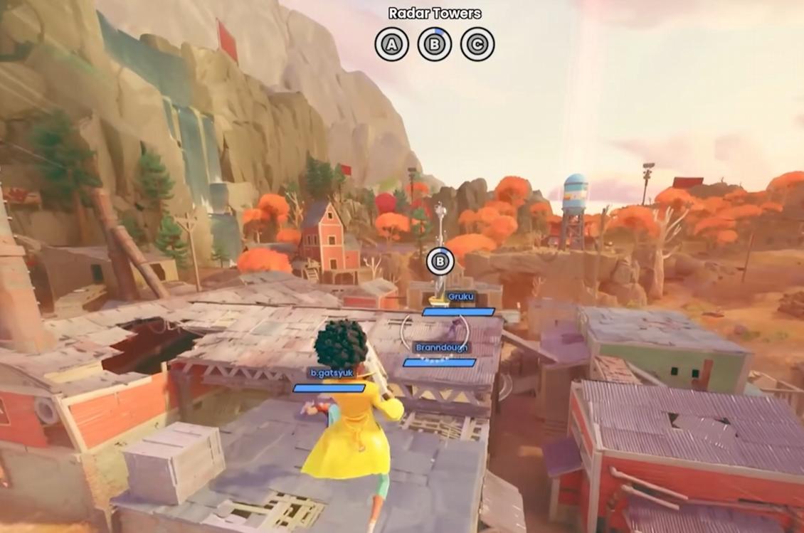 游戏里十余位风格迥异的参赛者,技能设计全是围绕夺旗玩法量身打造,没有一个角色是单纯的 “火力输出机器”,这也让团队搭配变得尤为重要。侦察兵的赛博格猎鹰能无视地形穿梭赛场,一键锁定敌方旗点大致位置,是队伍的 “眼睛”;乐队技术员的 Disco 球大招能让区域内敌人无法攻击,夺旗返程时放一个,堪称 “保命神器”;而手持突击步枪、大招是火箭筒的亚力山卓,则能在争夺雷达塔时扛起火力压制的重任。就连角色技能都能通过打野怪、开宝箱升级,前期猥琐发育,后期技能拉满的翻盘,在游戏里更是家常便饭。