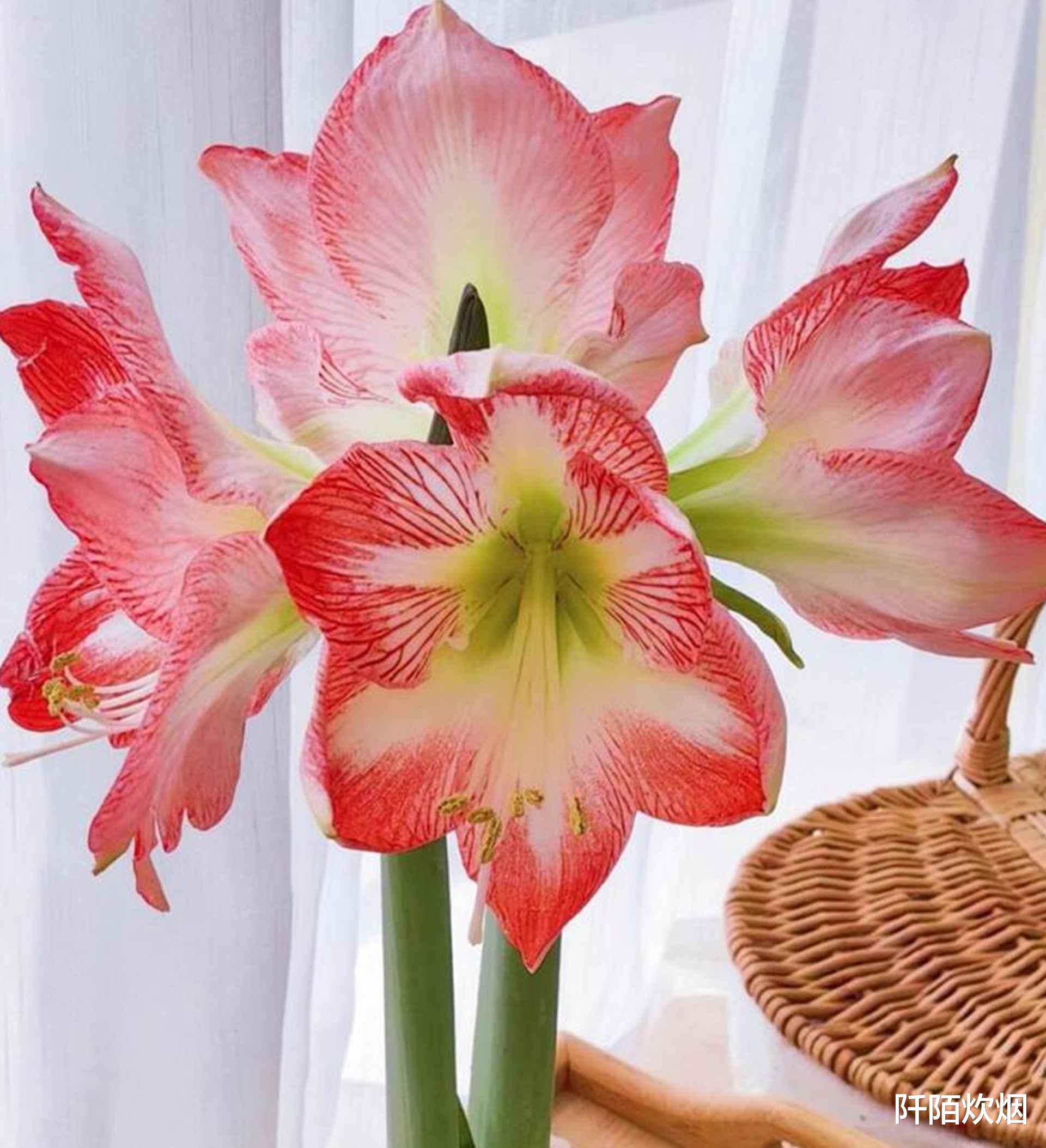又比如红丝丽朱顶红和波斯朱顶红。红丝丽朱顶红花朵颜色从外到内有深有浅,很独特。我在西南地区有朋友养这个品种,他说它喜欢阳光充足但不暴晒的环境,在阴凉的地方一个月花朵就会开始凋谢。波斯朱顶红花朵比较大,花量多,不过花期短。在云南的一些景区里,波斯朱顶红花期如果没有维护好,3 - 5天花朵就会掉落。