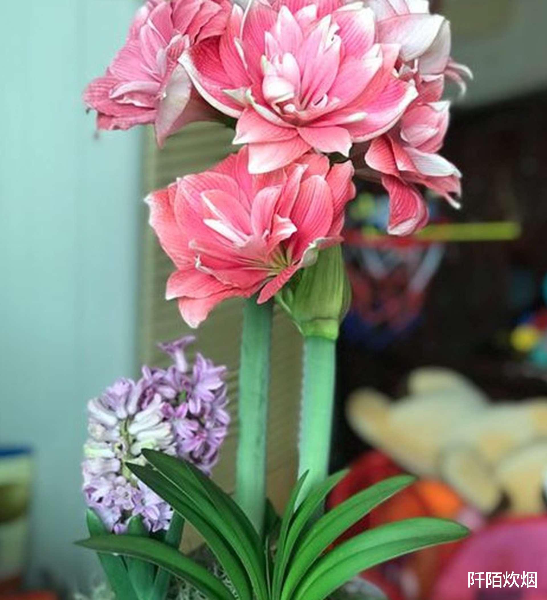 我们在养护朱顶红的时候,还可以和其他绿植对比着养。像和长寿花对比,长寿花很容易徒长,但是朱顶红只要光照合适就不容易徒长。我在杭州的朋友,他把长寿花和朱顶红放在同一个窗前,长寿花长得很长,朱顶红却很紧凑。还有和绿萝对比,绿萝基本不用管,定期浇水施肥就能活得很好。可朱顶红从球根到开花,每个阶段都需要关注。