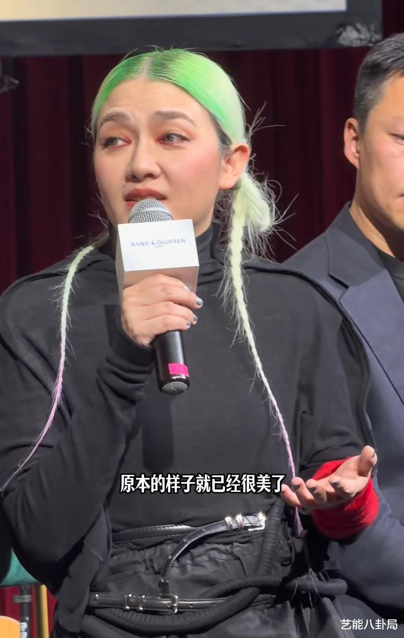 原来是戴了一顶定制的紫红色假发,难怪觉得有点陌生。