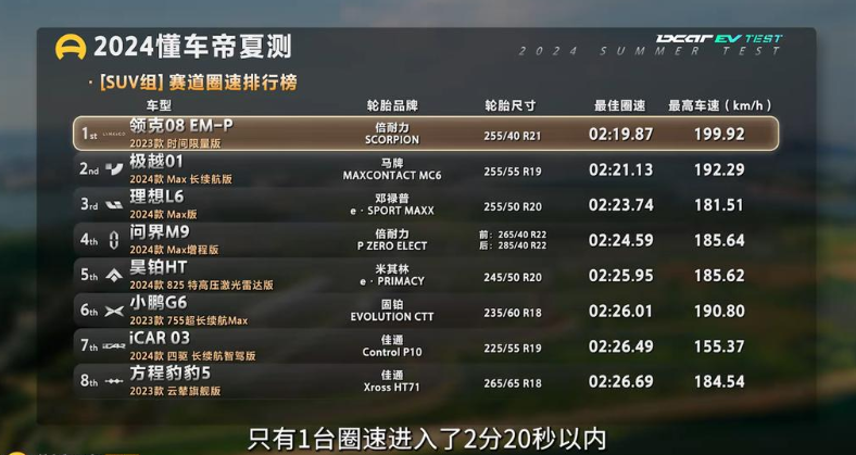 当然不只是燃油车,如今盛行的新能源汽车同样力求在赛道上能先声夺人。比如今年懂车帝夏测活动,将市面上主流的39款新能源车下放赛道进行比拼,其中领克08 EM-P凭借其卓越的极限驾控能力和出色的制动稳定性,从智己L6、Model 3等豪华轿车,以及极越01、沃尔沃EM90等热门新能源车型中脱颖而出,更以02:19.87秒的惊人圈速成绩夺得SUV组冠军,并跻身总榜前列,成为全场瞩目的焦点。